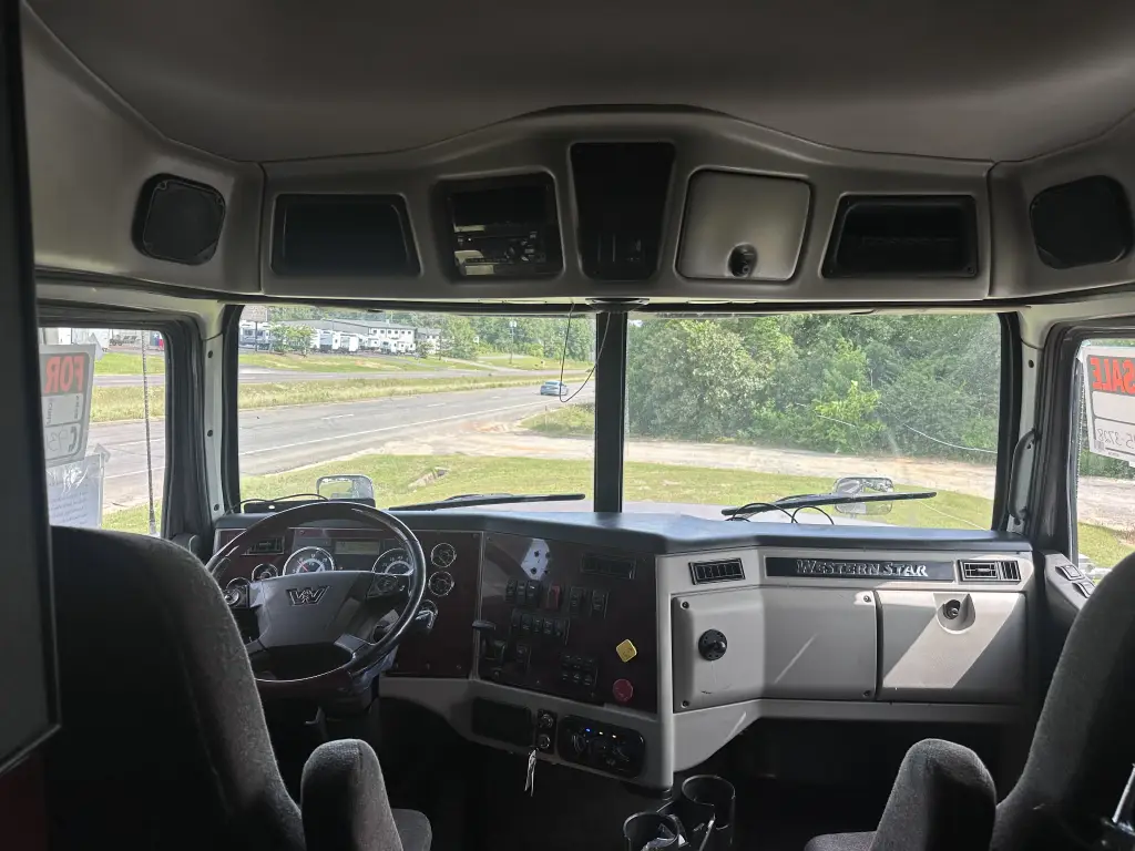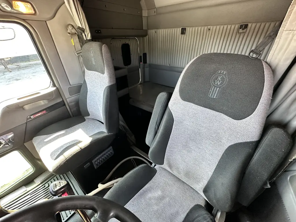Inside a W900, its easy to understand why so many professionals would prefer to turn the key on a Kenworth than any other truck. Deep, luxurious machine-stitched Diamond-and-button upholstery surrounds you with a rich-looking interior of unsurpassed comfort. Fully adjustable Air Cushion Premium Plus seats have been orthopedically contoured for lateral and lumbar support. The state-of-the-art dash features multiplexed electronic instrumentation, all the gauge options you want, and large, easy-to-reach switches and controls. In-cab storage includes a convenient place to put your thermos; upholstered seat back pockets; slide-in logbook and pen holder; center console with drink holders, two 12-volt outlets and a perfect spot to place your cell phone and more. Then there are all the subtle things you cant see you simply have to experience. Like Kenworths high performance heater/air conditioner with the motor thoughtfully mounted on the firewall to minimize cab noise. The flatter toe board angle and suspended throttle and clutch pedals that reduce leg strain. And the fit and finish you expect from Kenworth.