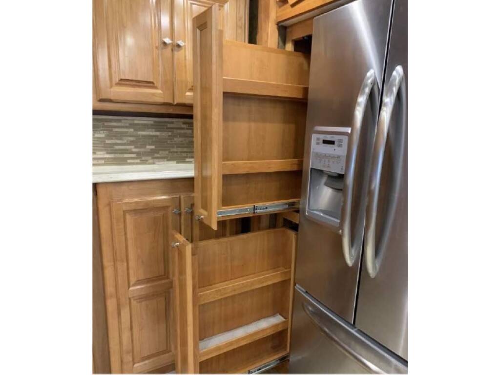 Rear and Side cameras with on dash monitor. Jack Knife sofa and new recliner. Dinning table with four chairs, Computer station by table, Dishwasher, 3 burner propane stove top,Convection/microwave oven stove, Maytag residential stainless-steel refrigerator with bottom freezer with ice and water in the door. 2 Pull out pantries. King size air number bed. Stacked washer and dryer in rear bathroom. Blu Ray Player, Four Samsung Smart TV's, Fireplace, Three air conditioners, two with heat pumps.