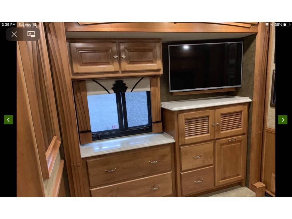 Rear and Side cameras with on dash monitor. Jack Knife sofa and new recliner. Dinning table with four chairs, Computer station by table, Dishwasher, 3 burner propane stove top,Convection/microwave oven stove, Maytag residential stainless-steel refrigerator with bottom freezer with ice and water in the door. 2 Pull out pantries. King size air number bed. Stacked washer and dryer in rear bathroom. Blu Ray Player, Four Samsung Smart TV's, Fireplace, Three air conditioners, two with heat pumps.