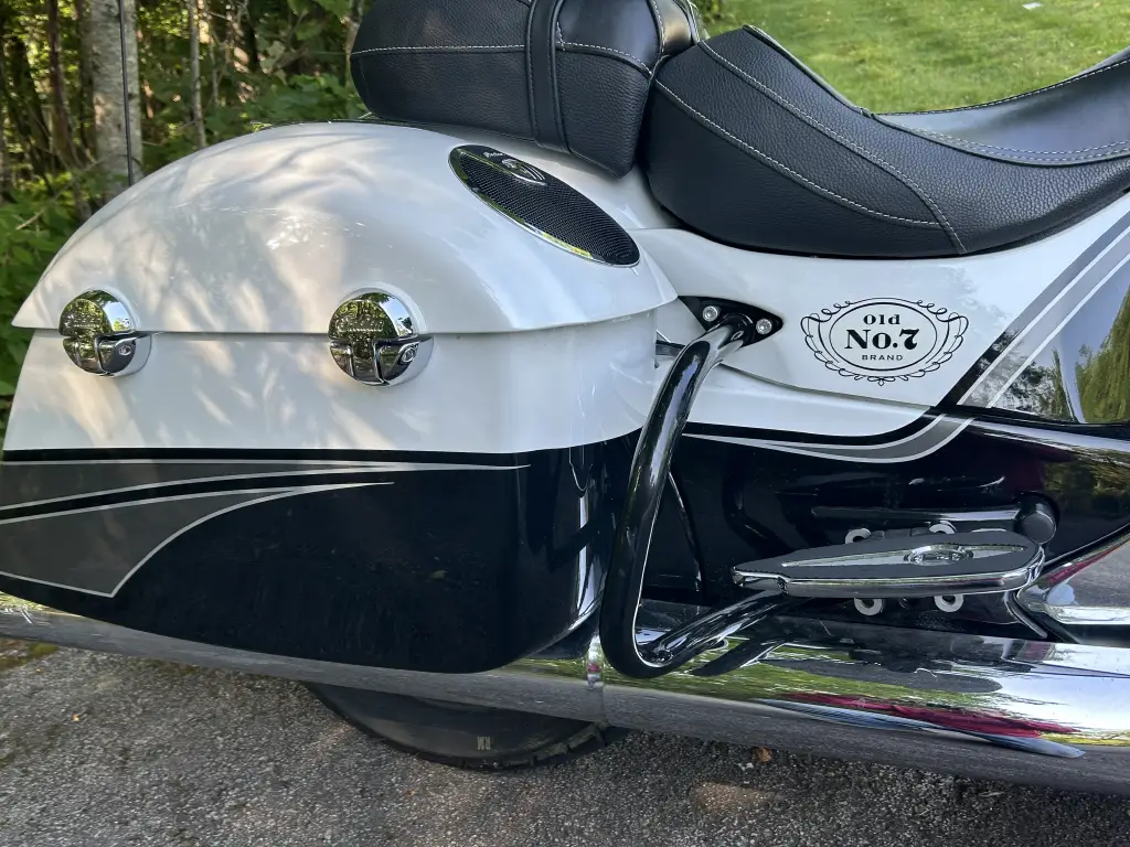 One of a kind, white and black crystal paint job with Jack Daniels inspired charcoal colored accents.