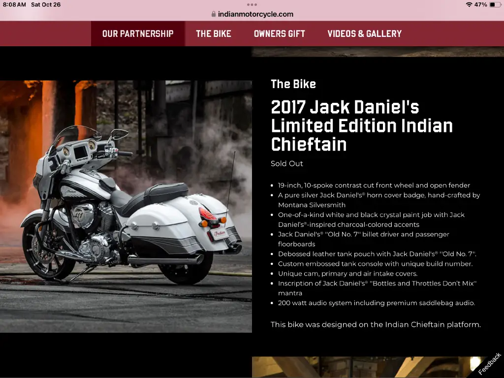Owning a limited edition motorcycle like the Indian Chieftain JACK DANIELS is a point of pride for enthusiasts and collectors alike. It represents a piece of motorcycle history and showcases the craftsmanship and creativity of the Indian Motorcycles brand. If you're in the market for a one-of-a-kind touring bike with a touch of American heritage, this Chieftain may be the perfect choice for you. Don't miss out on the opportunity to own a piece of motorcycle history with this special edition Indian Chieftain.