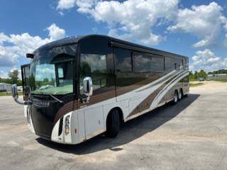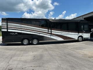 2017 Winnebago Tour 42QD 43' Class A Motorhome. Cummins 450HP Diesel Engine, 3 Slide Outs with Toppers, 2 Awnings, Sleeps 4, Triple A/C Units.