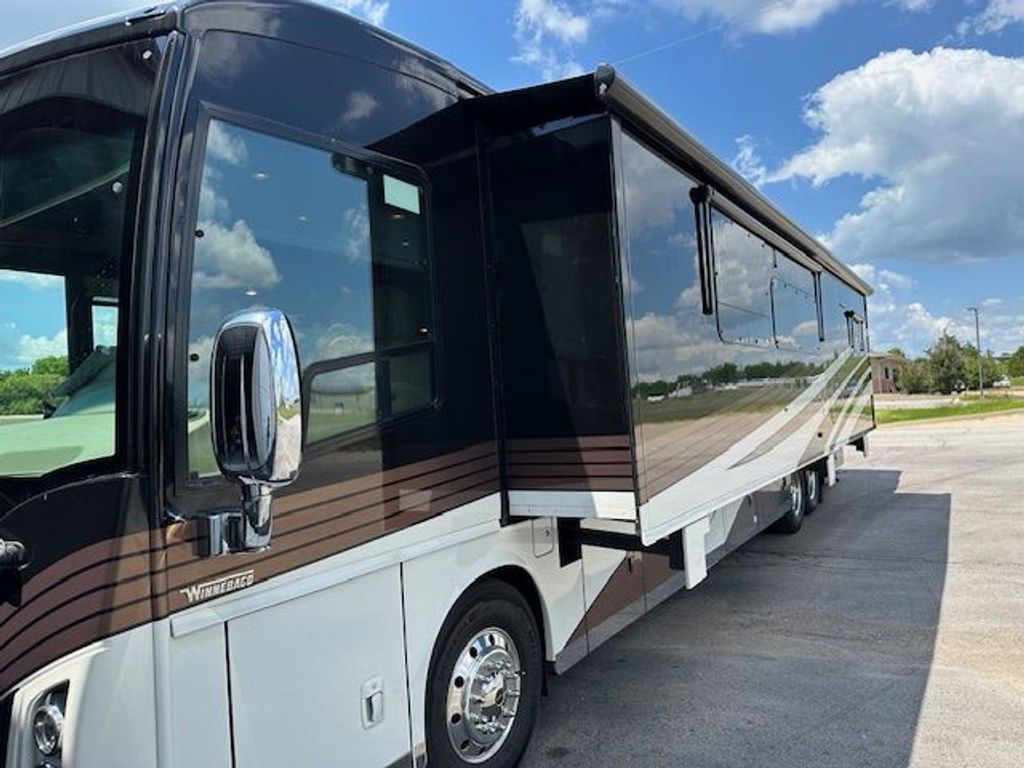 Behold the Winnebago Tour: A luxurious diesel pusher built to surpass the most demanding expectations. Thanks to its solid foundation built upon the revolutionary Maxum tag-axle chassis with lowered rail construction, the Tour boasts unequaled ride, performance, and storage capacity. A proven 450-hp Cummins turbo-charged diesel engine delivers all the power you need, which you will sense from the Flexsteel luxury six-way adjustable cab seats that come standard with a power footrest, heat and massage, and power lumbar support. Premium interior appointments like Corian countertops, porcelain tile flooring, LED ceiling lights, a security safe, and an electric fireplace make your amazing journeys that much more spectacular. Plus, outdoor entertaining is further enhanced by the available pullout Tailgate Package featuring a single-burner induction range top, steel counter, lockable refrigerator/freezer, storage area, and cold water access. And, for your optimal viewing pleasure, you can extend and pivot the exterior 32" HDTV. When it comes to elegant indoor and outdoor living, the Winnebago Tour delivers.
