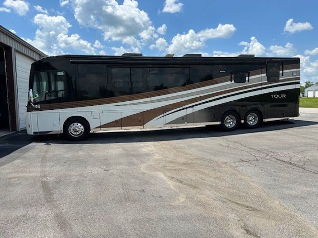 Youll love the look of your Tour. Why? Because with four contemporary and four traditional exterior full-body paint schemes, four interior decor selections, and three glazed cabinet woods, youll get precisely the look you desire. But looks arent everything, so the Tour backs it up with high-demand features such as the Glide & Dine dining table/buffet and multiple bathrooms. Several technologies have been added, including multiple USB connection points, an available 11-speaker JBL Premium Cab Sound System, and a 7" touchscreen OnePlace multiplex systems control panel. Its all built on a tag-axle Maxum Chassis for a smooth, powerful ride with unmatched storage capacity. The coach of tomorrow has arrived: the Winnebago Tour.