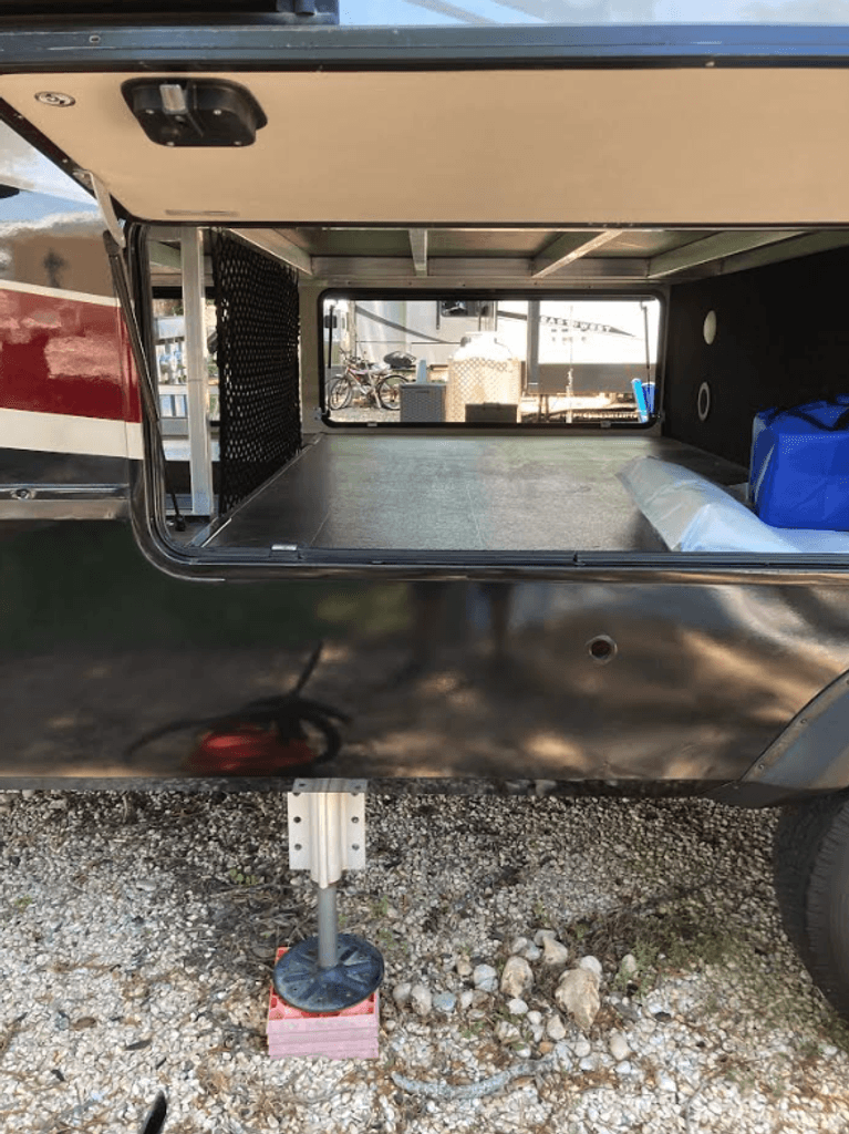 * This specific floor plan has a huge amount of storage (insulated and stays cool) underneath the living and bedroom areas.