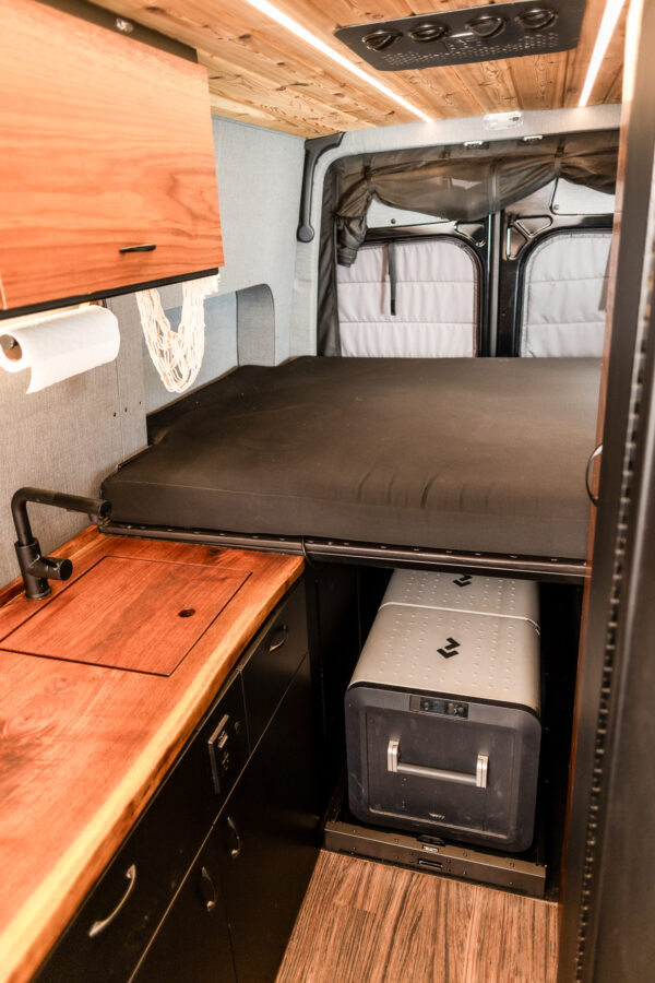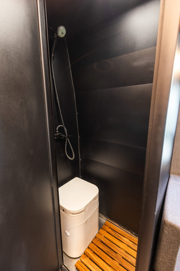 On the exterior, the van is equipped with a crossbars for solar and comfortably seat 3 with the vanland jump seat. With its 4×4 chassis, thoughtfully designed interior, and robust off-grid systems, this van is turn-key and ready for its next adventure.