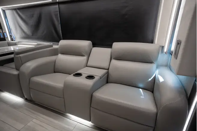 Pull Out Sofa Sleeper, LED TV on Power Lift, LED Lighting
