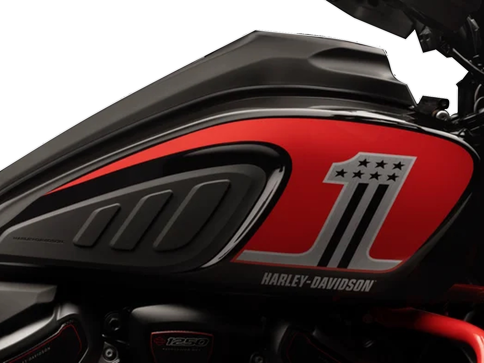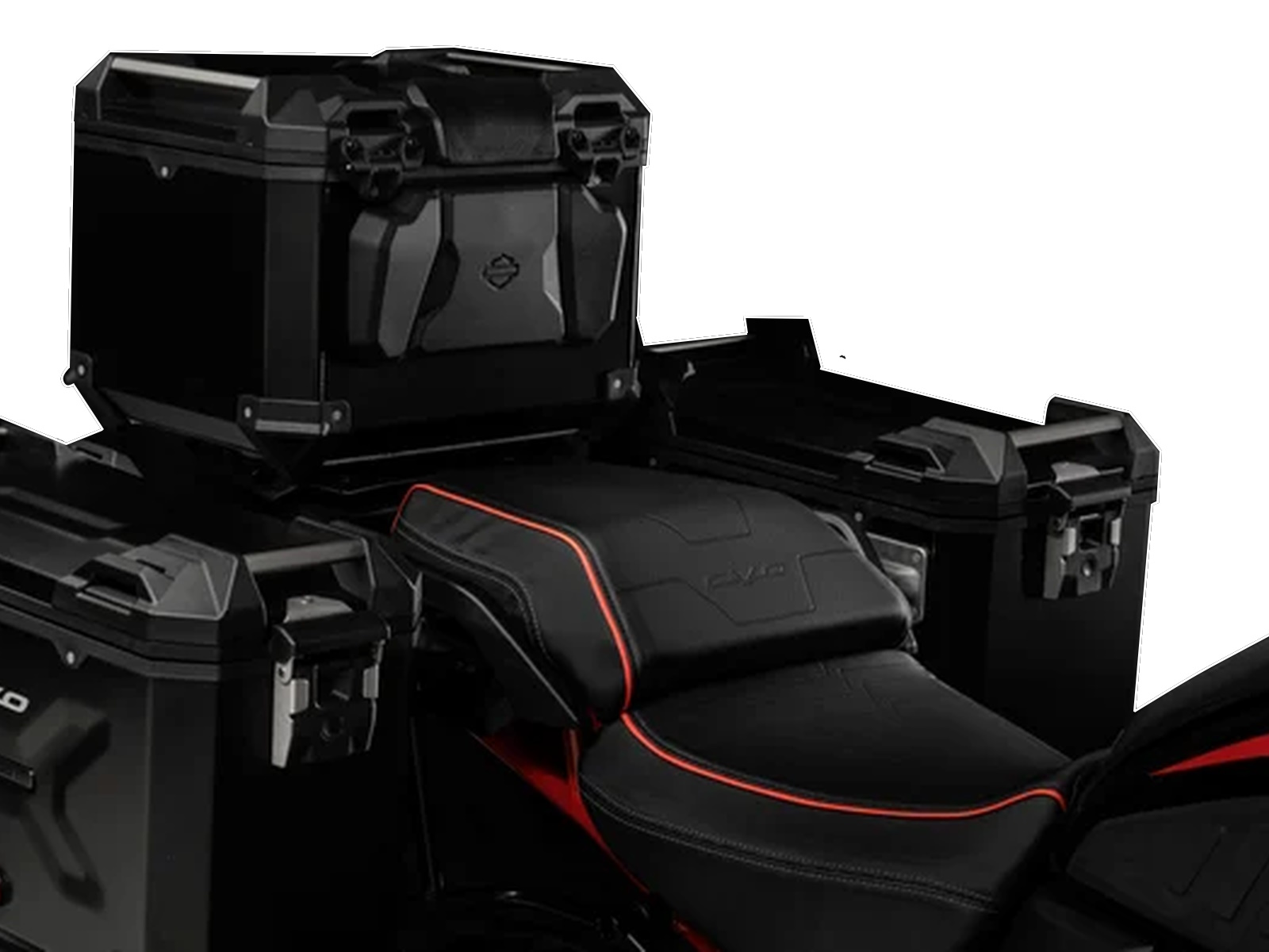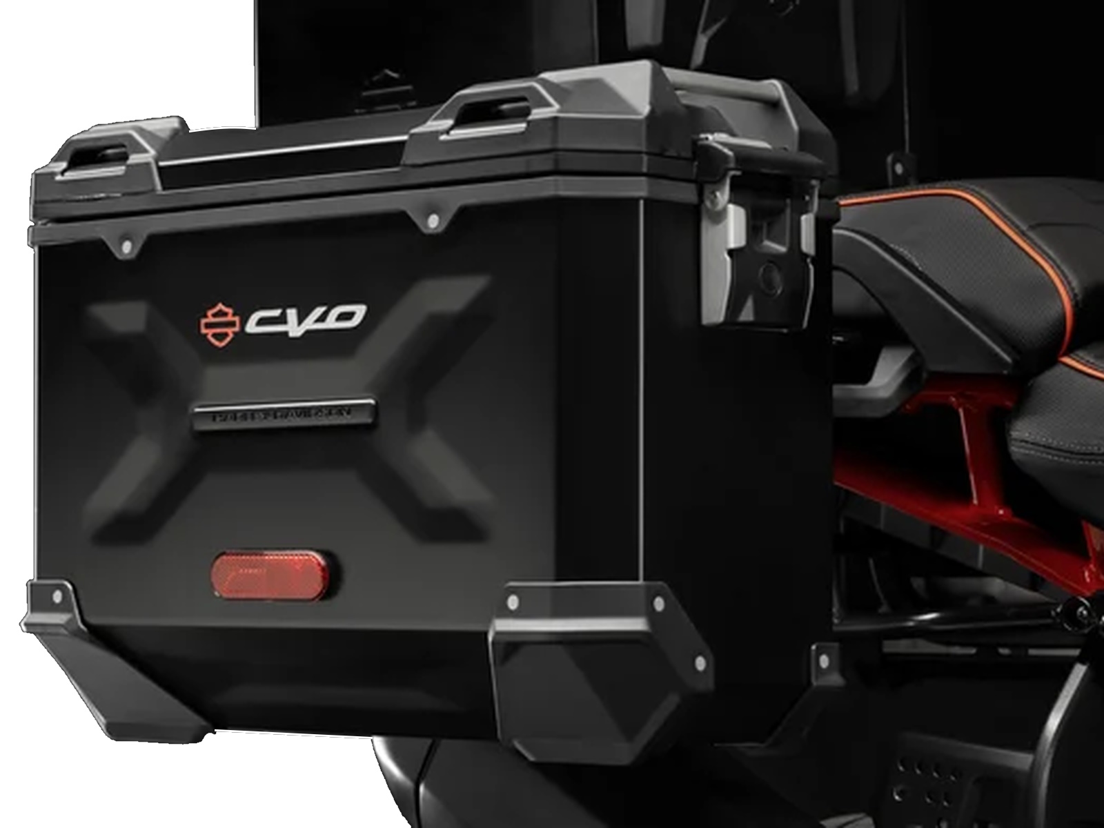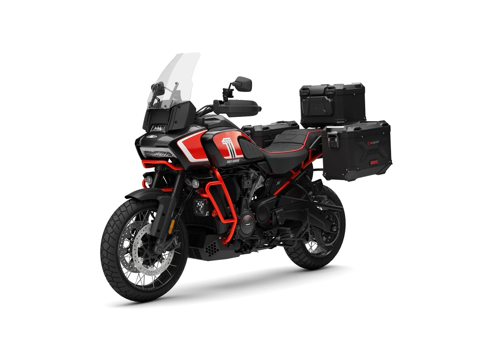 - The CVO Pan America stands out in Legendary Orange with Raven Metallic and Atlas Silver on the fuel tank and fairing. A stylized “#1” logo adorns the fuel tank, and a small CVO graphic lives on each case side. CVO 25th Anniversary graphics are on top of the outer fairing and the console insert.